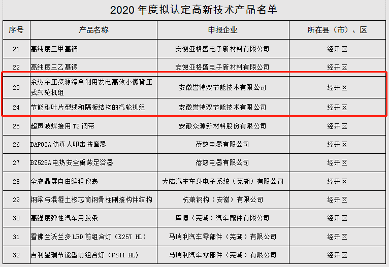 2021年1月11日,安徽省高新技術(shù)產(chǎn)品認(rèn)定名單正式公布。我公司產(chǎn)品“余熱余壓資源綜合利用發(fā)電高效小微背壓式汽輪機(jī)組、節(jié)能型葉片型線和隔板結(jié)構(gòu)的汽輪機(jī)組”兩項(xiàng)產(chǎn)品喜獲認(rèn)定,這次獲得高新技術(shù)產(chǎn)品認(rèn)定再一次驗(yàn)證了安徽譽(yù)特雙的卓越品質(zhì),同時也是對我司產(chǎn)品權(quán)威的肯定!
