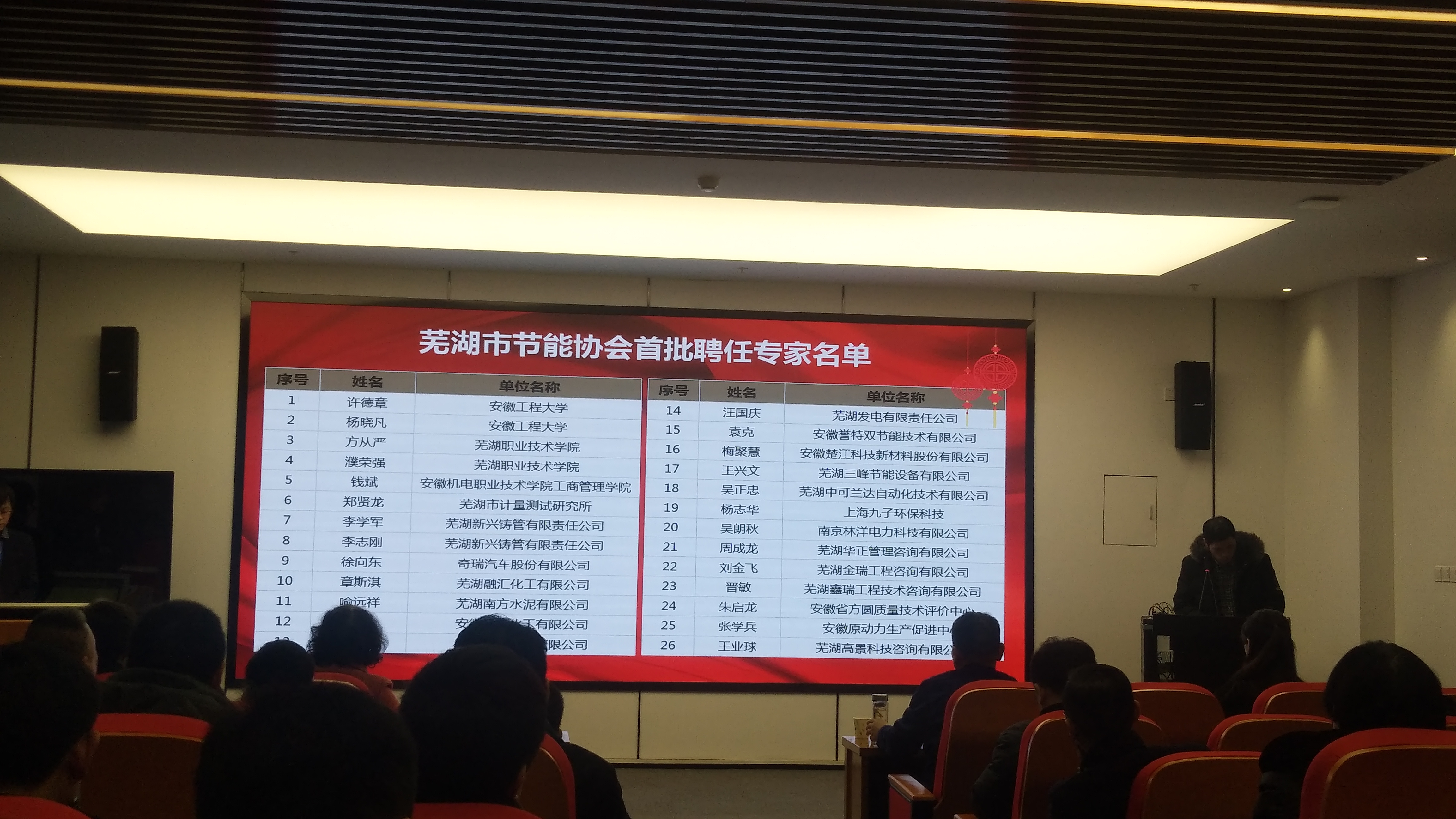 1月10日,蕪湖市節(jié)能協(xié)會(huì)年會(huì)暨節(jié)能宣貫對(duì)接交流會(huì)在蕪湖市企業(yè)服務(wù)中心順利召開,會(huì)上進(jìn)行了首批節(jié)能協(xié)會(huì)專家聘任儀式,我公司總經(jīng)理袁克先生獲聘協(xié)會(huì)專家,并做《大工業(yè)領(lǐng)域熱工系統(tǒng)綜合節(jié)能技改提效解決方案》專題匯報(bào)。