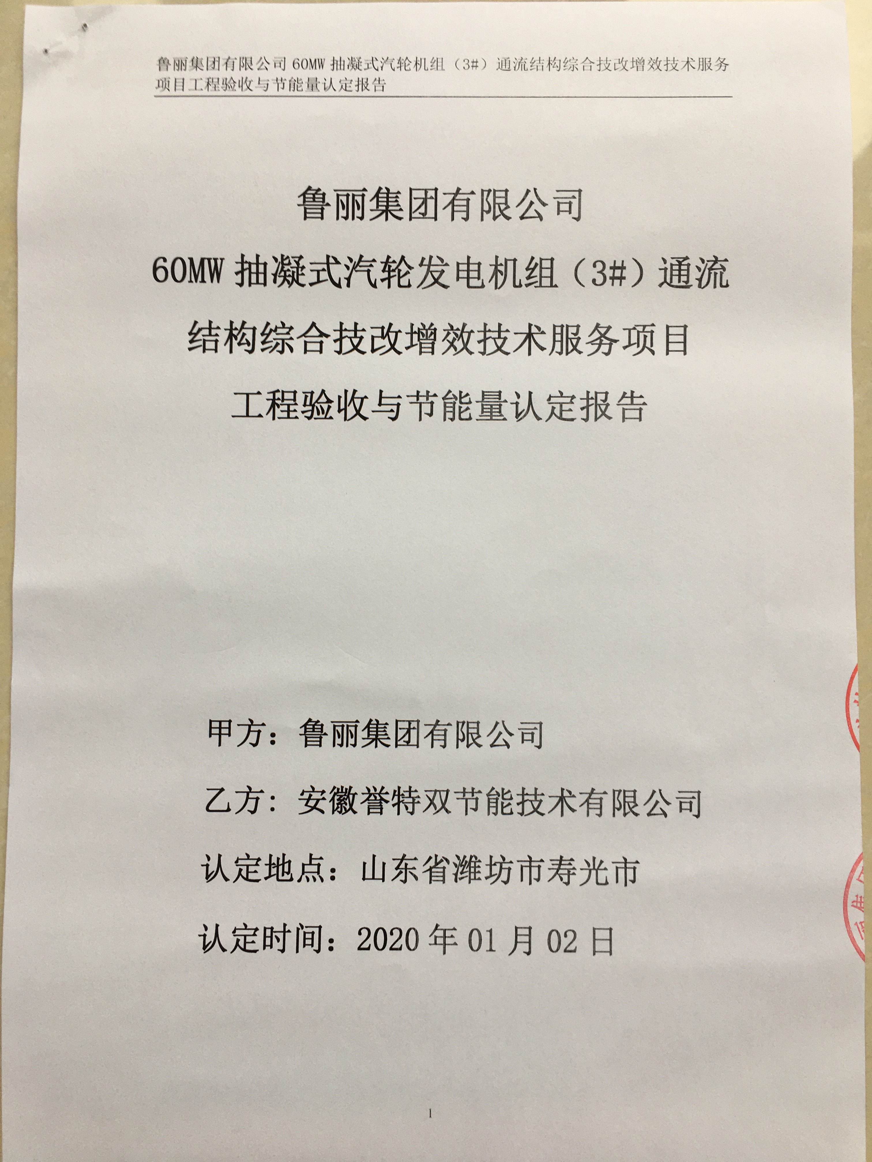 喜訊——魯麗集團(tuán)60MW汽輪機(jī)組通流技改提效服務(wù)項(xiàng)目通過節(jié)能量認(rèn)定和工程驗(yàn)收
