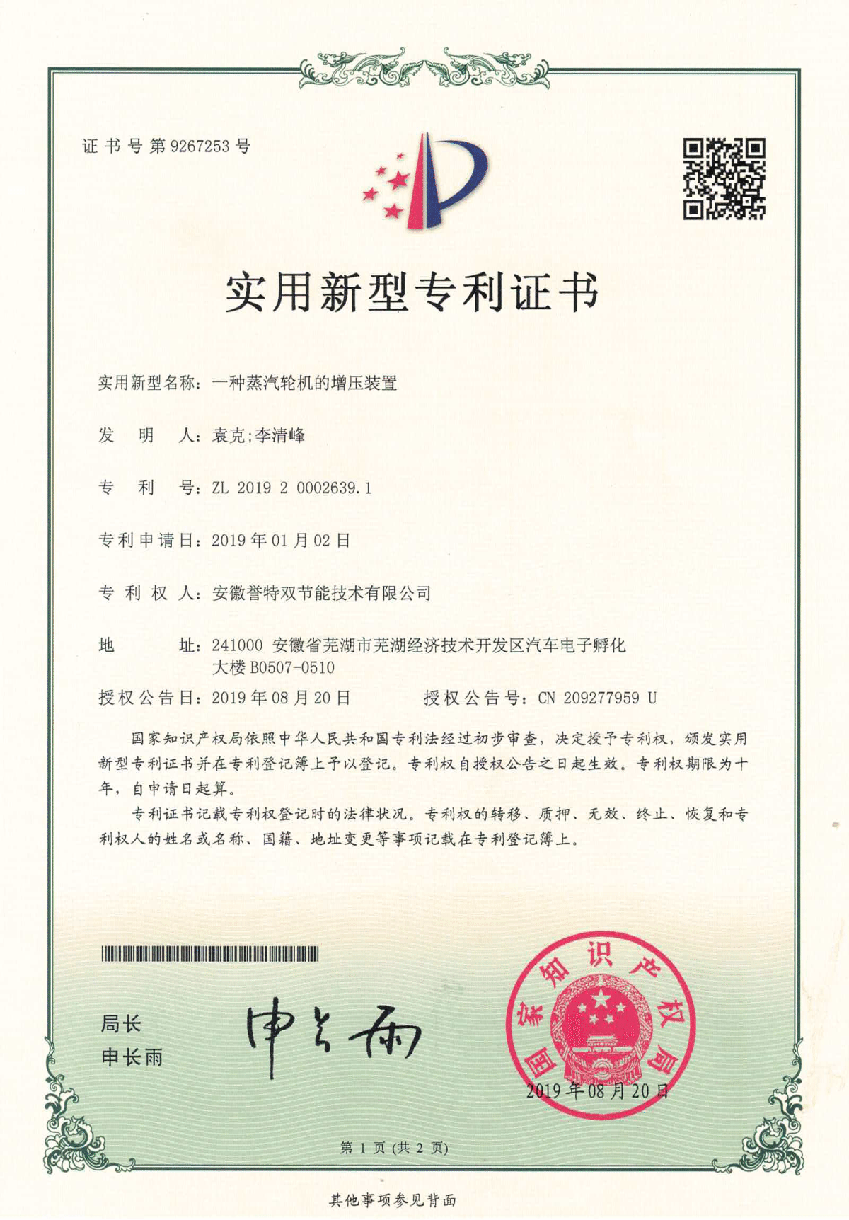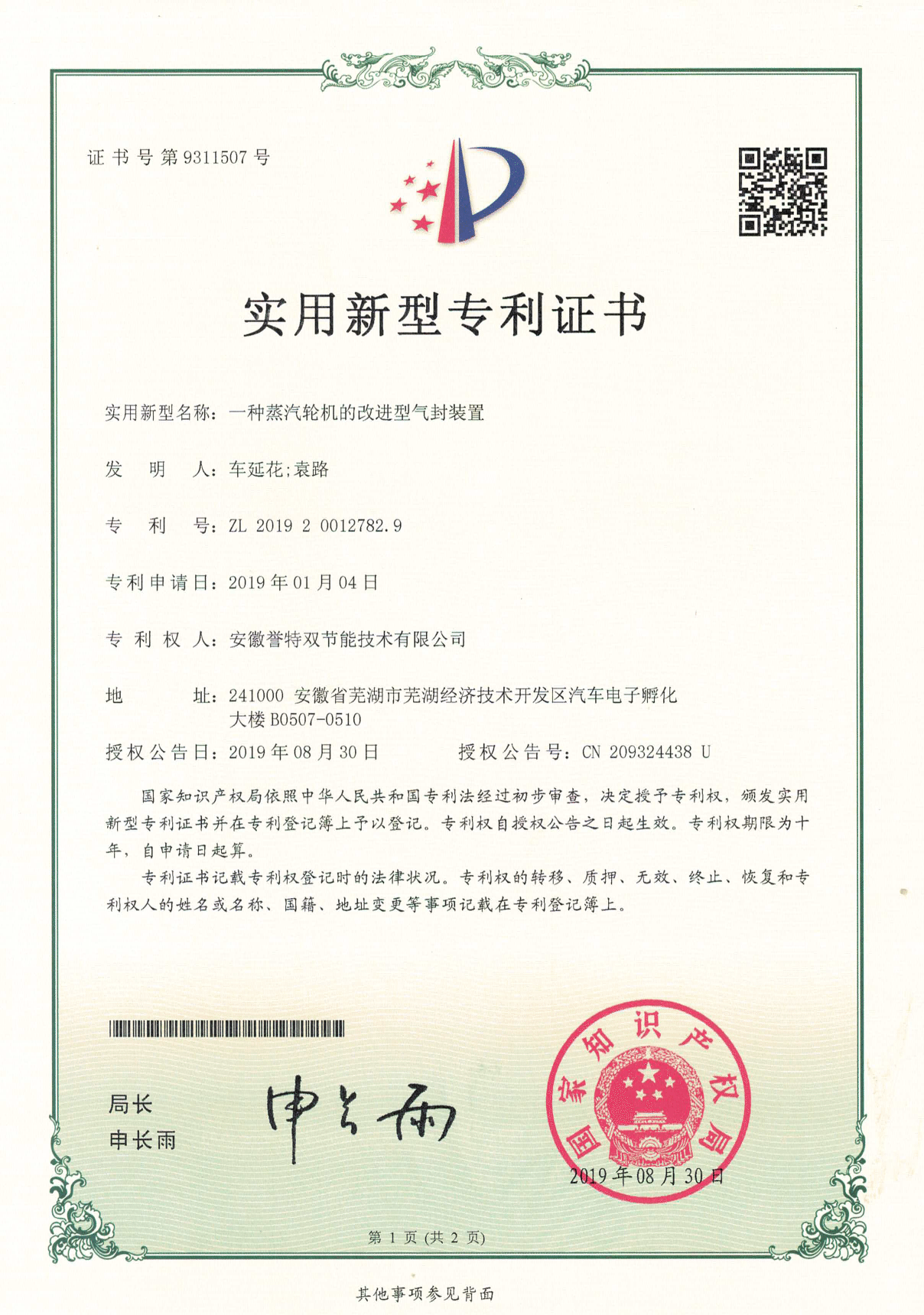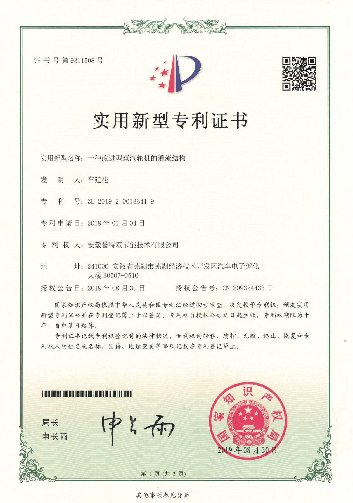 近日,我公司申報的“一種改進(jìn)型蒸汽輪機(jī)的通流結(jié)構(gòu)”、“一種蒸汽輪機(jī)的增壓裝置”、“一種蒸汽輪機(jī)的改進(jìn)型氣封裝置”等10項(xiàng)實(shí)用新型專利通過國家知識產(chǎn)權(quán)局審核,并順利獲取實(shí)用新型專利證書。