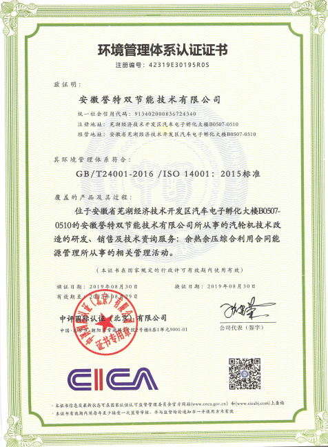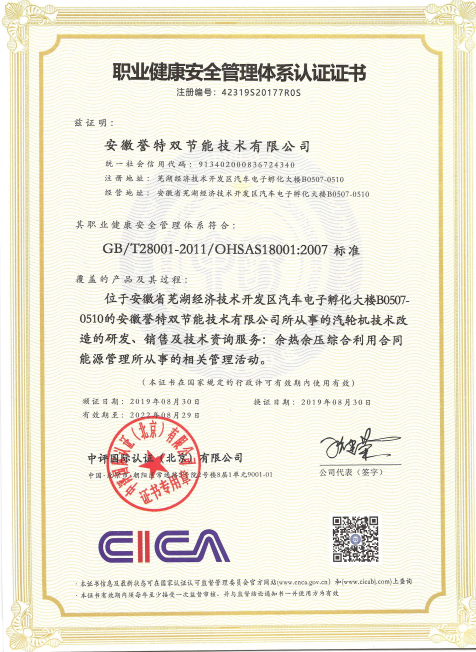 8月31日,公司質(zhì)量、環(huán)境、職業(yè)健康安全管理體系順利通過中評(píng)國際認(rèn)證(北京)有限公司的現(xiàn)場審核,再次認(rèn)證了質(zhì)量管理體系,以及新認(rèn)證了環(huán)境、職業(yè)健康安全管理體系,并榮獲三體系認(rèn)證證書。