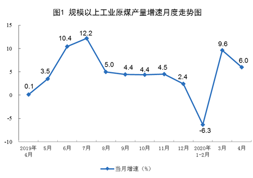 原煤生產(chǎn)增長(zhǎng)較快。4月份,生產(chǎn)原煤3.2億噸,同比增長(zhǎng)6.0%,增速比上月回落3.6個(gè)百分點(diǎn);日均產(chǎn)量1074萬噸,環(huán)比減少14萬噸。1—4月份,生產(chǎn)原煤11.5億噸,同比增長(zhǎng)1.3%。
