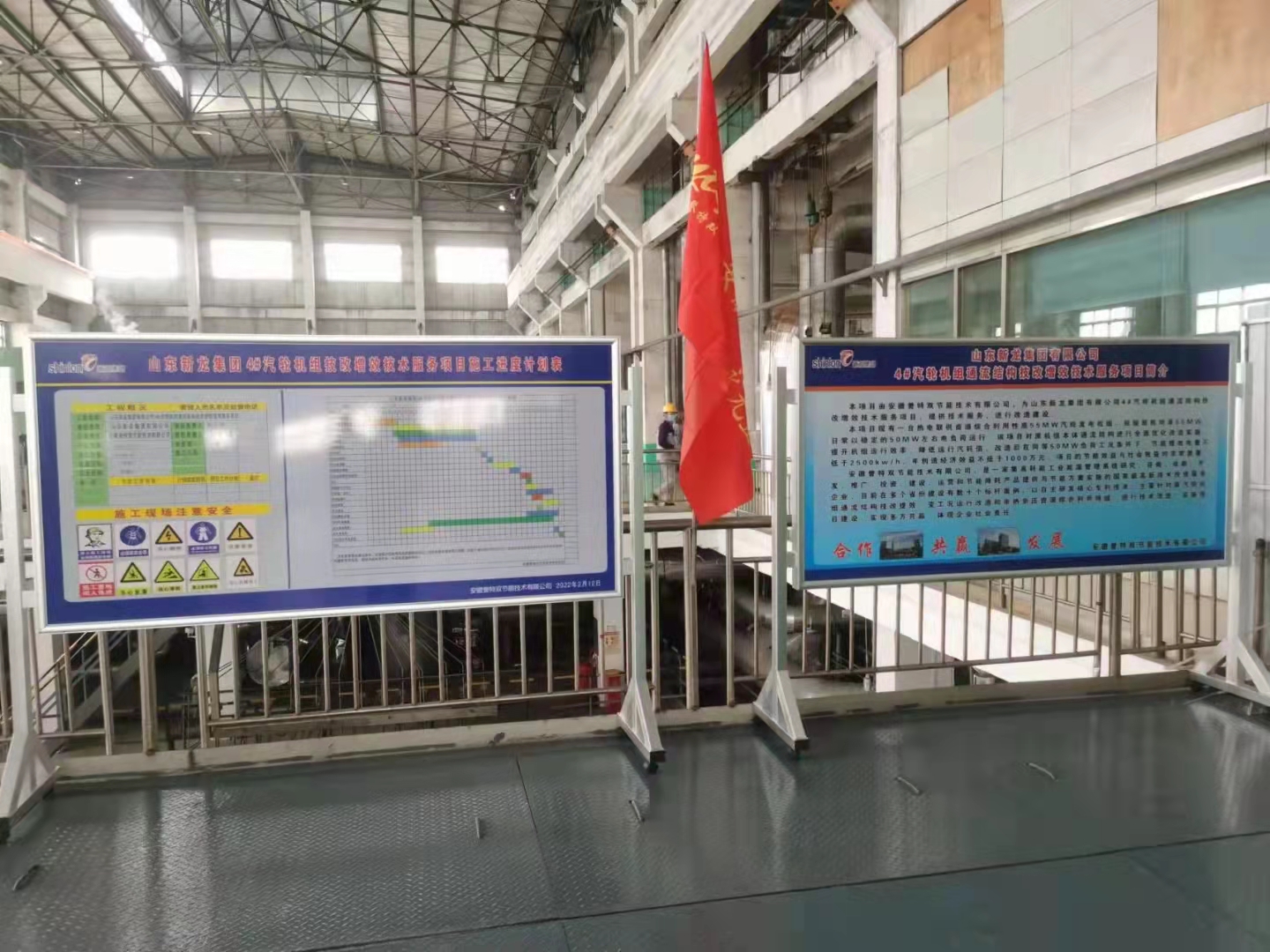 2022年3月25日下午17時33分,我公司承接的山東新龍集團有限公司55MW汽輪機4#機組通流結(jié)構(gòu)技改項目一次性開機沖轉(zhuǎn)成功,當前已順利完成超速等試驗,機組各項參數(shù)指標均正常、穩(wěn)定,26 日早上負荷已平穩(wěn)升到36MW左右,并持續(xù)穩(wěn)定提升中。