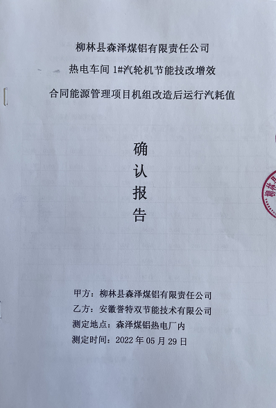 我公司以合同能源管理模式,全額投資實施的山西森澤煤鋁集團12MW背壓1#機組節(jié)能技改提效合同能源管理項目,自2022年5月19日開機沖轉(zhuǎn)成功并網(wǎng)以來,機組各項參數(shù)指標均正常、穩(wěn)定。項目于5月29日順利通過工程驗收,實測同等工況條件下,節(jié)能提效比例達34.1%,遠超合同約定的30.7%考核指標。