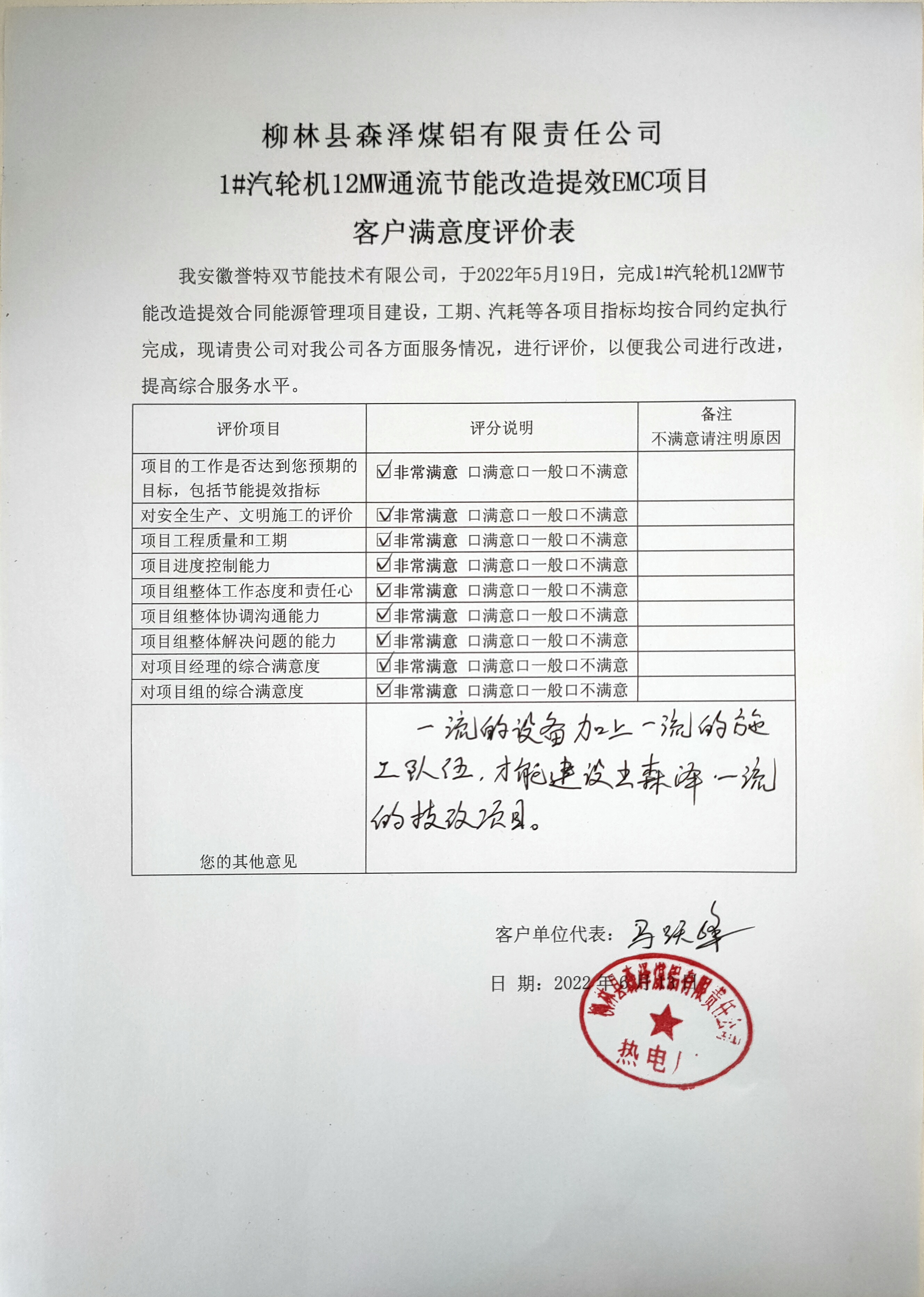 我公司仍將以“工業(yè)節(jié)能、永無止境、精益服務(wù)、合作共贏”的企業(yè)宗旨,不負客戶信任與托付,將該項目同樣建設(shè)成為標(biāo)桿業(yè)績,實現(xiàn)合作共贏,體現(xiàn)企業(yè)責(zé)任,為國家雙碳戰(zhàn)略貢獻力量!