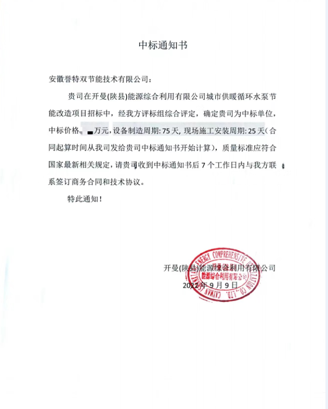 近日,公司中標(biāo)中國(guó)五百?gòu)?qiáng)企業(yè)杭州錦江集團(tuán)開(kāi)曼能源3.15MW熱網(wǎng)循環(huán)泵蒸汽拖動(dòng)節(jié)能改造項(xiàng)目。