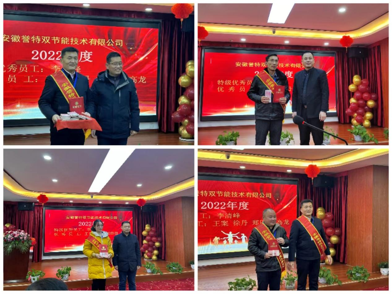 2023年1月14日,安徽譽(yù)特雙節(jié)能技術(shù)有限公司“2022年度總結(jié)、2023年度計劃與優(yōu)秀員工表彰大會”圓滿召開,公司在蕪員工參加了會議。