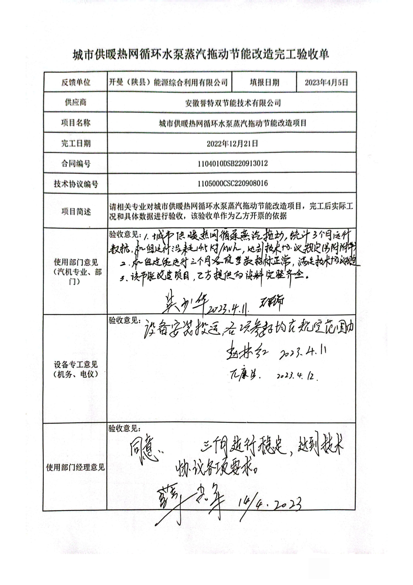 我公司以總包方式承接的——中國(guó)五百?gòu)?qiáng)錦江集團(tuán)三門峽開曼能源3.15MW城市供暖熱網(wǎng)循環(huán)水泵蒸汽背壓拖動(dòng)節(jié)能改造項(xiàng)目,于2022年12月20日一次性開機(jī)沖轉(zhuǎn)成功,高效汽輪機(jī)組替代電動(dòng)機(jī)拖動(dòng)循環(huán)水泵運(yùn)轉(zhuǎn),經(jīng)過三個(gè)月的不間斷持續(xù)運(yùn)行,機(jī)組各性能指標(biāo)均達(dá)到設(shè)計(jì)參數(shù),運(yùn)行正常穩(wěn)定,創(chuàng)造節(jié)能效益,現(xiàn)已通過工程驗(yàn)收,標(biāo)志著我公司在蒸汽拖動(dòng)節(jié)能技改領(lǐng)域又建立一項(xiàng)標(biāo)桿業(yè)績(jī),歡迎廣大潛在用能單位蒞臨考察指導(dǎo)工作,節(jié)能環(huán)保,合作共贏!