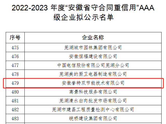 公司入選“安徽省守合同重信用AAA級(jí)企業(yè)”