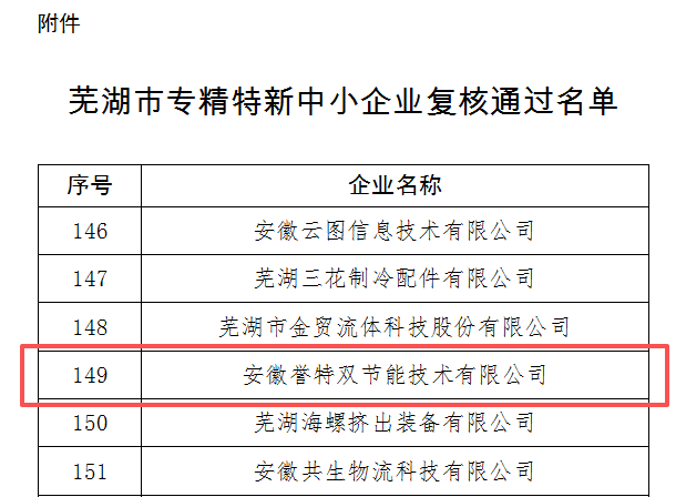喜訊--熱烈祝賀我司順利通過(guò)“蕪湖市專(zhuān)精特新中小企業(yè)”復(fù)核